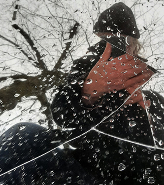Lets get Back to the Background, the branches of the tree, the way they are spread out, as I see it with my Clear Artist Eye, it looks like a painting by Pollock, I seriously dislike all his work, of all the bullshit artists that walked the avenues of Modern Art I dislike his drippings and droppings the most. By the way, I wonder: Was Pollock colourblind? Who cares? Again, lets go Back to the photograph. more interesting, look at the raindrops, silver of light, they are like tears coming from heaven: Mother earth is crying. Excuse for the corny metaphor.